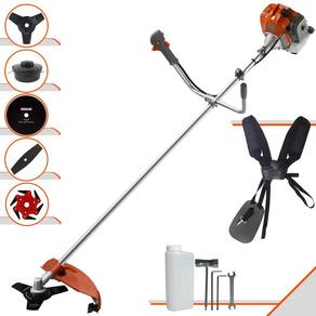 Com guidão ergonômico lateral, permite um alcance amplo e maior mobilidade, capaz de aumentar a produtividade diária. Possui motor 2 tempos á gasolina, de 51,6 Cilindradas (52cc) 13.000 de rotação 2,0 HP de potência que proporcionam maior performance e economia na operação.Seu conjunto de acessórios inclui kit de ferramentas, cinto de suporte duplo almofadado, carretel de nylon e lâmina de corte 3 pontas.