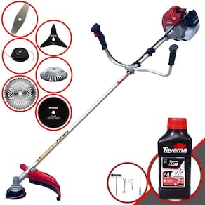 Roçadeira Profissional À Gasolina Kawashima BCJ 431L 42,7CC 1,7HP 2T + Faca 3 Pontas + Faca 40 Dentes + Faca 80 Dentes + Escova 38 Cerdas + Óleo Toyama FG50 500ml