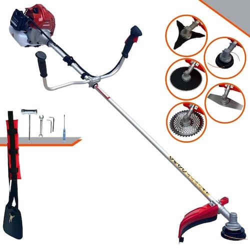 Com guidão ergonômico lateral, permite um alcance amplo e maior mobilidade, capaz de aumentar a produtividade diária. Possui motor 2 tempos á gasolina, de 52 Cilindradas; 2,5HP de potência que proporcionam maior performance e economia na operação. Seu conjunto de acessórios inclui kit de ferramentas, cinto de suporte almofadado, carretel de nylon e lâmina de corte 3 pontas.