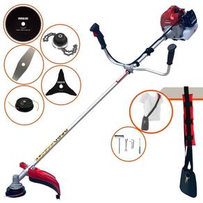 Com guidão ergonômico lateral, permite um alcance amplo e maior mobilidade, capaz de aumentar a produtividade diária. Possui motor 2 tempos á gasolina, de 43 Cilindradas; 1,7HP de potência que proporcionam maior performance e economia na operação. Seu conjunto de acessórios inclui kit de ferramentas, cinto de suporte almofadado, carretel de nylon e lâmina de corte 3 pontas.