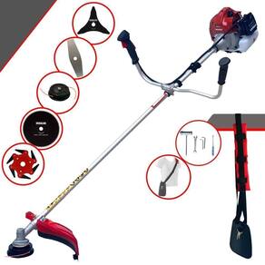 Com guidão ergonômico lateral, permite um alcance amplo e maior mobilidade, capaz de aumentar a produtividade diária. Possui motor 2 tempos á gasolina, de 43 Cilindradas; 1,7HP de potência que proporcionam maior performance e economia na operação. Seu conjunto de acessórios inclui kit de ferramentas, cinto de suporte almofadado, carretel de nylon e lâmina de corte 3 pontas.