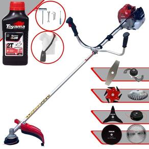 Roçadeira Profissional À Gasolina Kawashima BCJ 431L 42,7CC 1,7HP 2T + Faca 3 Pontas + Faca 6 Pontas + Faca 40 Dentes + Faca 80 Dentes + Trimmer + Escova 38 Cerdas + Óleo Toyama FG50 500ml