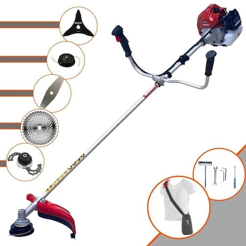 Com guidão ergonômico lateral, permite um alcance amplo e maior mobilidade, capaz de aumentar a produtividade diária. Possui motor 2 tempos á gasolina, de 43 Cilindradas; 1,7HP de potência que proporcionam maior performance e economia na operação. Seu conjunto de acessórios inclui kit de ferramentas, cinto de suporte almofadado, carretel de nylon e lâmina de corte 3 pontas.