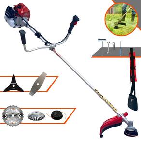 Com guidão ergonômico lateral, permite um alcance amplo e maior mobilidade, capaz de aumentar a produtividade diária. Possui motor 2 tempos á gasolina, de 43 Cilindradas; 1,7HP de potência que proporcionam maior performance e economia na operação. Seu conjunto de acessórios inclui kit de ferramentas, cinto de suporte almofadado, carretel de nylon e lâmina de corte 3 pontas.