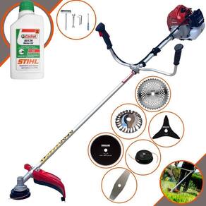 Com guidão ergonômico lateral, permite um alcance amplo e maior mobilidade, capaz de aumentar a produtividade diária. Possui motor 2 tempos á gasolina, de 52 Cilindradas; 2,5HP de potência que proporcionam maior performance e economia na operação. Seu conjunto de acessórios inclui kit de ferramentas, cinto de suporte almofadado, carretel de nylon e lâmina de corte 3 pontas.