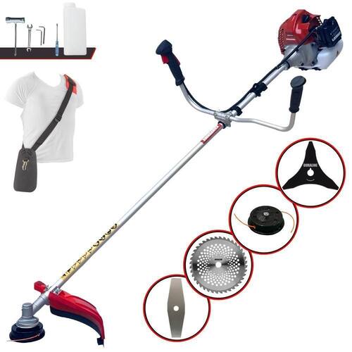 Com guidão ergonômico lateral, permite um alcance amplo e maior mobilidade, capaz de aumentar a produtividade diária. Possui motor 2 tempos á gasolina, de 52 Cilindradas; 2,5HP de potência que proporcionam maior performance e economia na operação. Seu conjunto de acessórios inclui kit de ferramentas, cinto de suporte almofadado, carretel de nylon e lâmina de corte 3 pontas.