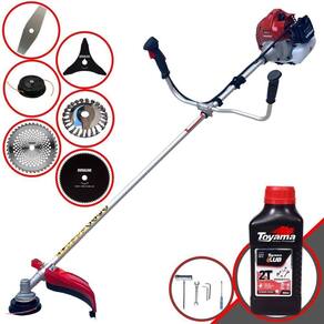 Roçadeira Profissional À Gasolina Kawashima BCJ 521L 52CC 2,5HP 2T + Faca 3 Pontas 255mm + Faca 40 Dentes 255mm + Faca 80 Dentes 255mm + Escova Rotativa 24 cerdas + Óleo Toyama FG50 500ml