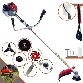 Com guidão ergonômico lateral, permite um alcance amplo e maior mobilidade, capaz de aumentar a produtividade diária. Possui motor 2 tempos á gasolina, de 52 Cilindradas; 2,5HP de potência que proporcionam maior performance e economia na operação. Seu conjunto de acessórios inclui kit de ferramentas, cinto de suporte almofadado, carretel de nylon e lâmina de corte 3 pontas.
