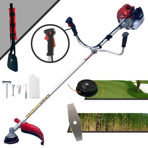 Com guidão ergonômico lateral, permite um alcance amplo e maior mobilidade, capaz de aumentar a produtividade diária. Possui motor 2 tempos á gasolina, de 52 Cilindradas; 2,5HP de potência que proporcionam maior performance e economia na operação. Seu conjunto de acessórios inclui kit de ferramentas, cinto de suporte almofadado, carretel de nylon e lâmina de corte 3 pontas.