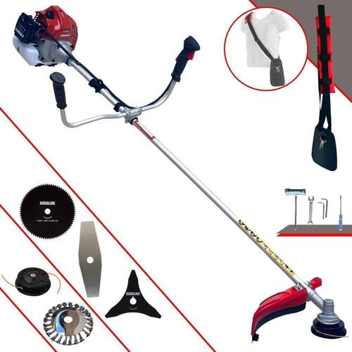 Com guidão ergonômico lateral, permite um alcance amplo e maior mobilidade, capaz de aumentar a produtividade diária. Possui motor 2 tempos á gasolina, de 52 Cilindradas; 2,5HP de potência que proporcionam maior performance e economia na operação. Seu conjunto de acessórios inclui kit de ferramentas, cinto de suporte almofadado, carretel de nylon e lâmina de corte 3 pontas.