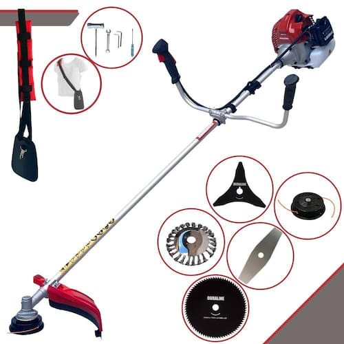 Com guidão ergonômico lateral, permite um alcance amplo e maior mobilidade, capaz de aumentar a produtividade diária. Possui motor 2 tempos á gasolina, de 52 Cilindradas; 2,5HP de potência que proporcionam maior performance e economia na operação. Seu conjunto de acessórios inclui kit de ferramentas, cinto de suporte almofadado, carretel de nylon e lâmina de corte 3 pontas.