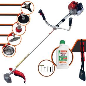 Com guidão ergonômico lateral, permite um alcance amplo e maior mobilidade, capaz de aumentar a produtividade diária. Possui motor 2 tempos á gasolina, de 62 Cilindradas; 3HP de potência que proporcionam maior performance e economia na operação. Seu conjunto de acessórios inclui kit de ferramentas, cinto de suporte almofadado, carretel de nylon e lâmina de corte 3 pontas.