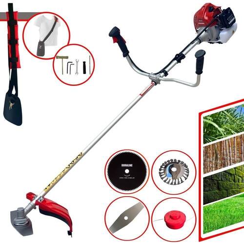 Com guidão ergonômico lateral, permite um alcance amplo e maior mobilidade, capaz de aumentar a produtividade diária. Possui motor 2 tempos á gasolina, de 62 Cilindradas; 3HP de potência que proporcionam maior performance e economia na operação. Seu conjunto de acessórios inclui kit de ferramentas, cinto de suporte almofadado, carretel de nylon e lâmina de corte 3 pontas.