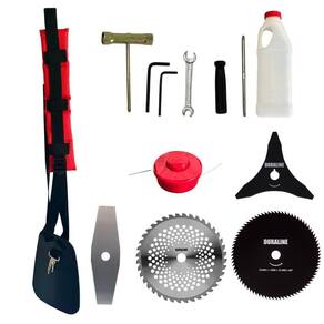 Roçadeira Profissional À Gasolina Kawashima BCJ 620L 62CC 3HP 2T + Faca 3 Pontas Duraline 255mm + Faca 40 Dentes Duraline 255mm + Faca 80 Dentes Duraline 255mm + Óleo Castrol Stihl 2T 500ml