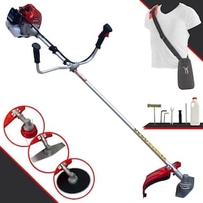 Com guidão ergonômico lateral, permite um alcance amplo e maior mobilidade, capaz de aumentar a produtividade diária. Possui motor 2 tempos á gasolina, de 62 Cilindradas; 3HP de potência que proporcionam maior performance e economia na operação. Seu conjunto de acessórios inclui kit de ferramentas, cinto de suporte almofadado, carretel de nylon e lâmina de corte 3 pontas.