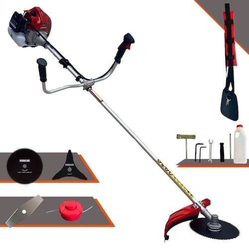 Com guidão ergonômico lateral, permite um alcance amplo e maior mobilidade, capaz de aumentar a produtividade diária. Possui motor 2 tempos á gasolina, de 62 Cilindradas; 3HP de potência que proporcionam maior performance e economia na operação. Seu conjunto de acessórios inclui kit de ferramentas, cinto de suporte almofadado, carretel de nylon e lâmina de corte 3 pontas.