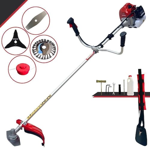 Com guidão ergonômico lateral, permite um alcance amplo e maior mobilidade, capaz de aumentar a produtividade diária. Possui motor 2 tempos á gasolina, de 62 Cilindradas; 3HP de potência que proporcionam maior performance e economia na operação. Seu conjunto de acessórios inclui kit de ferramentas, cinto de suporte almofadado, carretel de nylon e lâmina de corte 3 pontas.