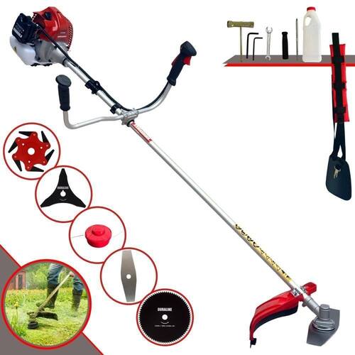 Com guidão ergonômico lateral, permite um alcance amplo e maior mobilidade, capaz de aumentar a produtividade diária. Possui motor 2 tempos á gasolina, de 62 Cilindradas; 3HP de potência que proporcionam maior performance e economia na operação. Seu conjunto de acessórios inclui kit de ferramentas, cinto de suporte almofadado, carretel de nylon e lâmina de corte 3 pontas.