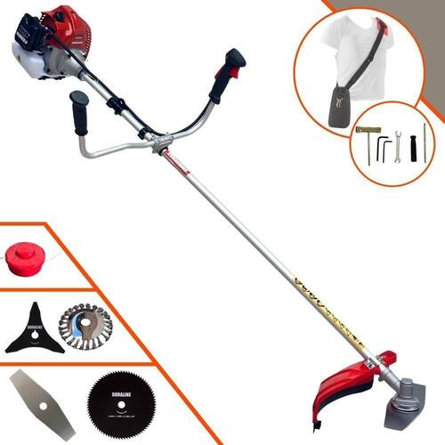 Com guidão ergonômico lateral, permite um alcance amplo e maior mobilidade, capaz de aumentar a produtividade diária. Possui motor 2 tempos á gasolina, de 62 Cilindradas; 3HP de potência que proporcionam maior performance e economia na operação. Seu conjunto de acessórios inclui kit de ferramentas, cinto de suporte almofadado, carretel de nylon e lâmina de corte 3 pontas.