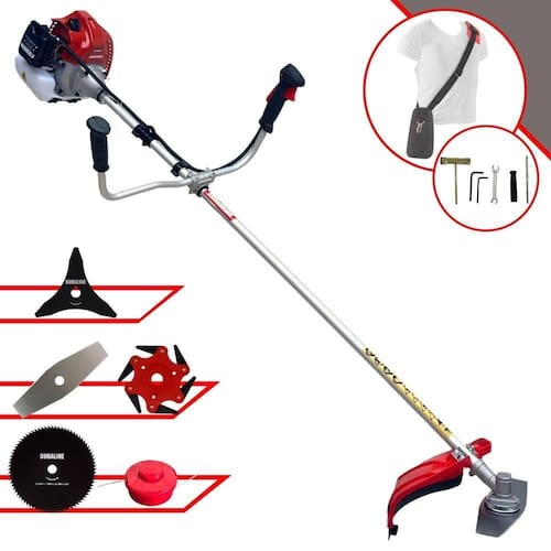 Com guidão ergonômico lateral, permite um alcance amplo e maior mobilidade, capaz de aumentar a produtividade diária. Possui motor 2 tempos á gasolina, de 62 Cilindradas; 3HP de potência que proporcionam maior performance e economia na operação. Seu conjunto de acessórios inclui kit de ferramentas, cinto de suporte almofadado, carretel de nylon e lâmina de corte 3 pontas.