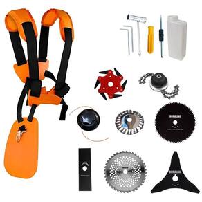 Roçadeira Lateral ANMAX CG430B À Gasolina 2 Tempos 43cc 1,7HP + Faca 3 Pontas 255m + Faca 6 Pontas 250mm + Faca 40 Dentes 255mm + Faca 80 Dentes 255mm + Escova Rotativa 24 cerdas + Trimmer + ÓLEO CASTROL STIHL 500ml + Kit EPI Completo