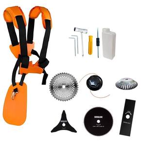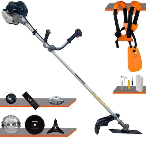 Roçadeira Lateral ANMAX CG430B À Gasolina 2 Tempos 43cc 1,7HP + Faca 3 Pontas 255m + Faca 40 Dentes 255mm + Faca 80 Dentes 255mm + Escova 38 Cerdas