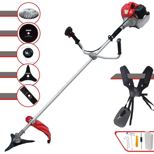 Roçadeira Lateral ANMAX CG430P-TB Plus À Gasolina 2 Tempos 43cc 2HP + Faca 3 Pontas 255mm + Faca 80 Dentes 255mm + Escova Rotativa 38 Cerdas