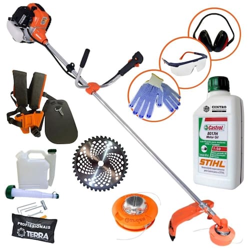 Roçadeira Lateral Terra GR520XP À Gasolina 2 Tempos 52cc 2,5HP Com Lâmina 40 Dentes + Óleo Castrol Stihl 500ml