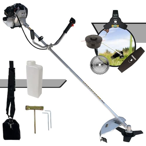 Com guidão ergonômico lateral, permite um alcance amplo e maior mobilidade, capaz de aumentar a produtividade diária. Possui motor 2 tempos á gasolina, de 42,7 Cilindradas, 12.000 de rotação 1,7HP de potência que proporcionam maior performance e economia na operação.Seu conjunto de acessórios inclui kit de ferramentas, cinto de suporte almofadado, carretel de nylon e lâmina de corte 3 pontas.