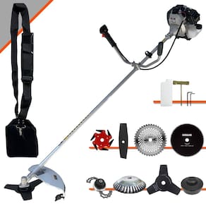 Com guidão ergonômico lateral, permite um alcance amplo e maior mobilidade, capaz de aumentar a produtividade diária. Possui motor 2 tempos á gasolina, de 42,7 Cilindradas, 12.000 de rotação 1,7HP de potência que proporcionam maior performance e economia na operação. Seu conjunto de acessórios inclui kit de ferramentas, cinto de suporte almofadado, carretel de nylon e lâmina de corte 3 pontas.