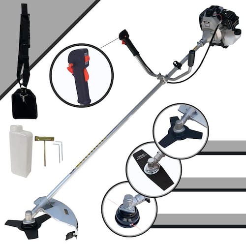 Com guidão ergonômico lateral, permite um alcance amplo e maior mobilidade, capaz de aumentar a produtividade diária. Possui motor 2 tempos á gasolina, de 42,7 Cilindradas, 12.000 de rotação 1,7HP de potência que proporcionam maior performance e economia na operação.Seu conjunto de acessórios inclui kit de ferramentas, cinto de suporte almofadado, carretel de nylon e lâmina de corte 3 pontas.