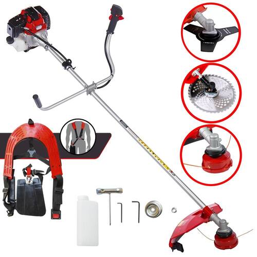 Com guidão ergonômico lateral, permite um alcance amplo e maior mobilidade, capaz de aumentar a produtividade diária. Possui motor 2 tempos á gasolina, de 43 Cilindradas, 10.000 de rotação 1,7HP de potência que proporcionam maior performance e economia na operação. Seu conjunto de acessórios inclui kit de ferramentas, cinto de suporte duplo almofadado, carretel de nylon e lâmina de corte 3 pontas.