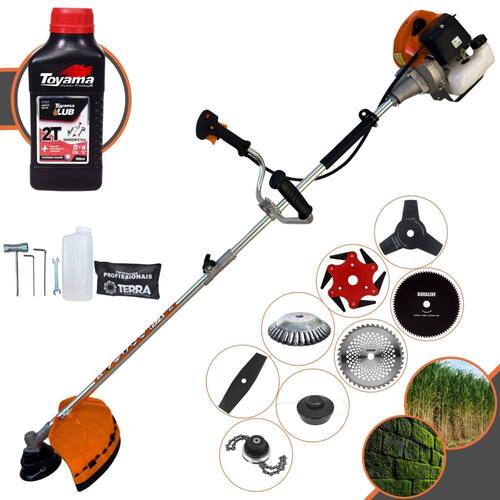 Roçadeira Completa À Gasolina Terra GRHB430 Bi-Partido 2T 43cc 1,7HP Alta Performance Com Carretel de Nylon + Kit 7 Opções de Corte + ÓLEO TOYAMA 2T
