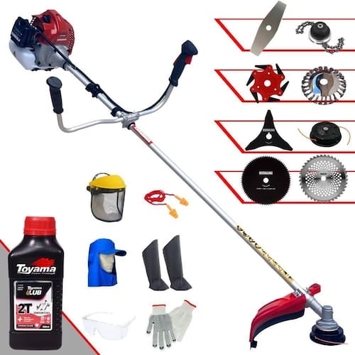 Roçadeira Profissional À Gasolina Kawashima BCJ 521L 52CC 2,5HP 2T + Faca 3 Pontas + Faca 40 Dentes + Faca 80 Dentes + Escova Rotativa 24 cerdas + Trimmer + Faca 6 Pontas + Óleo Toyama FG50 500ml + Kit EPI Completo