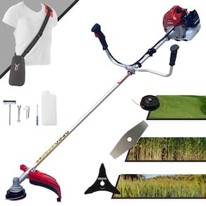 Com guidão ergonômico lateral, permite um alcance amplo e maior mobilidade, capaz de aumentar a produtividade diária. Possui motor 2 tempos á gasolina, de 43 Cilindradas; 1,7HP de potência que proporcionam maior performance e economia na operação. Seu conjunto de acessórios inclui kit de ferramentas, cinto de suporte almofadado, carretel de nylon e lâmina de corte 3 pontas.