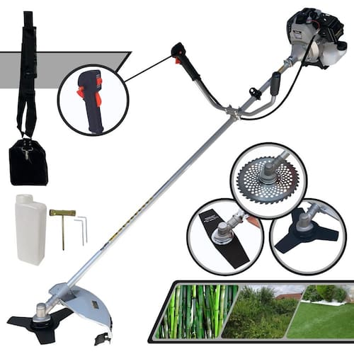 Com guidão ergonômico lateral, permite um alcance amplo e maior mobilidade, capaz de aumentar a produtividade diária. Possui motor 2 tempos á gasolina, de 42,7 Cilindradas, 12.000 de rotação 1,7HP de potência que proporcionam maior performance e economia na operação.Seu conjunto de acessórios inclui kit de ferramentas, cinto de suporte almofadado, carretel de nylon e lâmina de corte 3 pontas.
