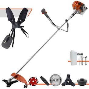 Com guidão ergonômico lateral, permite um alcance amplo e maior mobilidade, capaz de aumentar a produtividade diária. Possui motor 2 tempos á gasolina, de 42,7 Cilindradas (43cc) 9.000 de rotação 1,7HP de potência que proporcionam maior performance e economia na operação.Seu conjunto de acessórios inclui kit de ferramentas, cinto de suporte duplo almofadado, carretel de nylon e lâmina de corte 3 pontas.