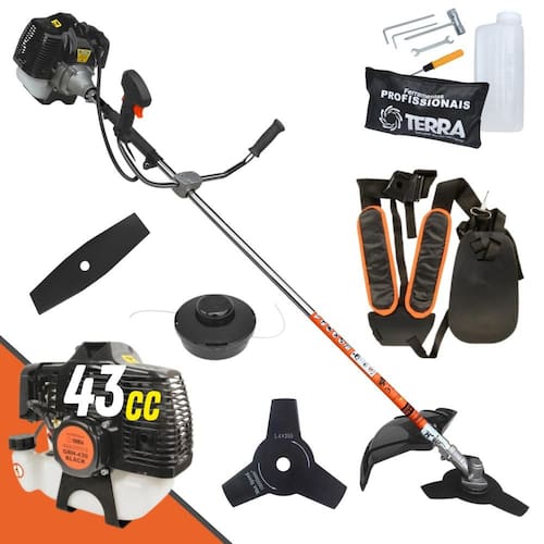 Roçadeira Lateral Terra GRH-430 Black À Gasolina 2 Tempos 43cc 1,7HP + Faca 2 Pontas 330mm 2,7mm