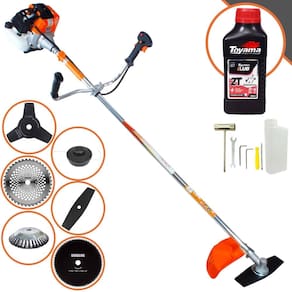 Roçadeira Lateral Vulcan VR430S À Gasolina 2 Tempos 43cc 1,7HP + Faca 3 Pontas 255mm + Faca 40 Dentes 255mm + Faca 80 Dentes 255mm + Escova Rotativa 200mm 38 Cerdas + Óleo TOYAMA LUB FG50 500ml 2T