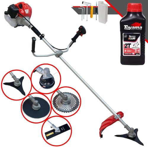 Roçadeira Lateral ANMAX CG430P-TB Plus À Gasolina 2 Tempos 43cc 2HP + Faca 3 Pontas + Faca 40 Dentes + Faca 80 Dentes + Óleo Toyama FG50 500ml