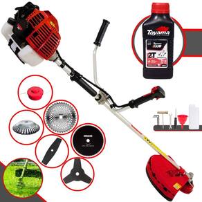 Roçadeira Lateral Kawashima KW52-L À Gasolina 2T 52c 2,5HP Com Lâmina 3 Pontas + Faca 2 Pontas 330mm 2,7mm + Faca 40 Dentes 255mm 2mm + Faca 80 Dentes 255mm 1,5mm + Escova Rotativa 38 Cerdas 200mm + Óleo TOYAMA LUB FG50 500ml 2T