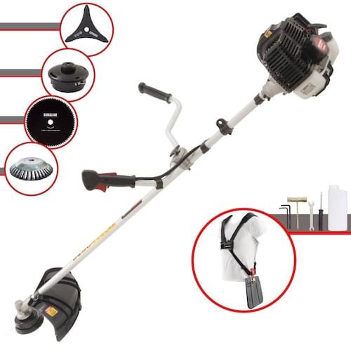 Roçadeira Kawashima KW43-LE À Gasolina 2T 43cc 1,7HP Com Lâmina 3 Pontas + Faca 80 Dentes 255mm 1,5mm + Escova Rotativa 38 Cerdas 200mm