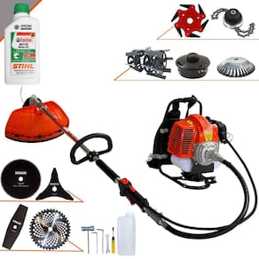 Roçadeira Costal GRC430 43cc 1,7HP Com Carretel + Facas 2 Pontas, 3 Pontas, 6 Pontas, 40 Dentes, 80 Dentes, Trimmer, Escova e Enxada + Óleo Stihl 2T