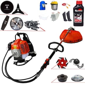 Possui motor 2 tempos á gasolina, de 43Cilindradas, 1,7HP de potência que proporcionam maior performance e economia na operação.Seu conjunto de acessórios inclui kit de ferramentas, cinto de suporte duplo almofadado, carretel de nylon e lâmina de corte 40 Dentes.