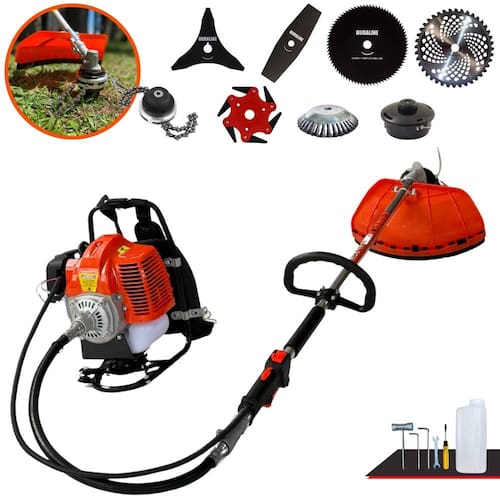 Possui motor 2 tempos á gasolina, de 43Cilindradas, 1,7HP de potência que proporcionam maior performance e economia na operação.Seu conjunto de acessórios inclui kit de ferramentas, cinto de suporte duplo almofadado, carretel de nylon e lâmina de corte 40 Dentes.