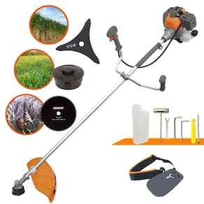 Com guidão ergonômico lateral, permite um alcance amplo e maior mobilidade, capaz de aumentar a produtividade diária. Possui motor 2 tempos á gasolina, de 51,6 Cilindradas (52cc) 10.000 de rotação 2,0 HP de potência que proporcionam maior performance e economia na operação. Seu conjunto de acessórios inclui kit de ferramentas, cinto de sustentação, carretel de nylon e lâmina de corte 3 pontas.
