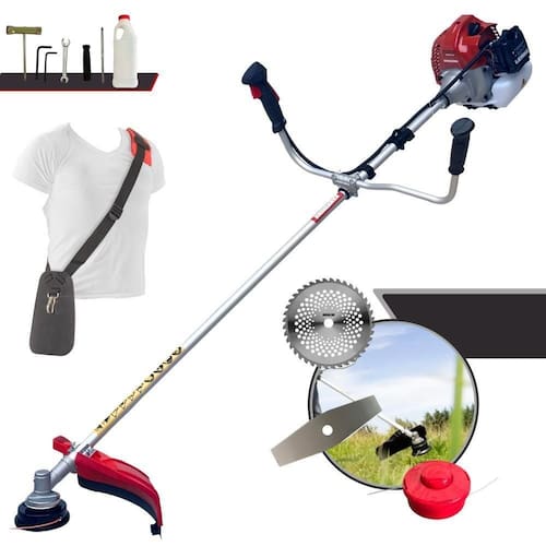 Com guidão ergonômico lateral, permite um alcance amplo e maior mobilidade, capaz de aumentar a produtividade diária. Possui motor 2 tempos á gasolina, de 62 Cilindradas; 3HP de potência que proporcionam maior performance e economia na operação. Seu conjunto de acessórios inclui kit de ferramentas, cinto de suporte almofadado, carretel de nylon e lâmina de corte 3 pontas.