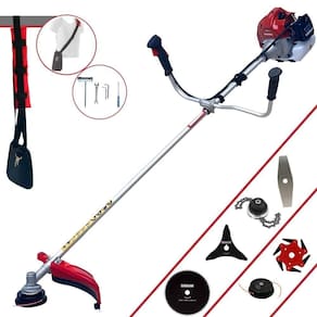 Com guidão ergonômico lateral, permite um alcance amplo e maior mobilidade, capaz de aumentar a produtividade diária. Possui motor 2 tempos á gasolina, de 43 Cilindradas; 1,7HP de potência que proporcionam maior performance e economia na operação. Seu conjunto de acessórios inclui kit de ferramentas, cinto de suporte almofadado, carretel de nylon e lâmina de corte 3 pontas.