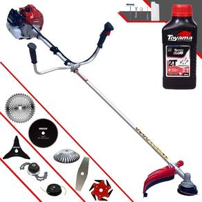 Roçadeira Profissional À Gasolina Kawashima BCJ 431L 42,7CC 1,7HP 2T + Faca 3 Pontas + Faca 6 Pontas + Faca 40 Dentes + Faca 80 Dentes + Trimmer + Escova 38 Cerdas + Óleo Toyama FG50 500ml