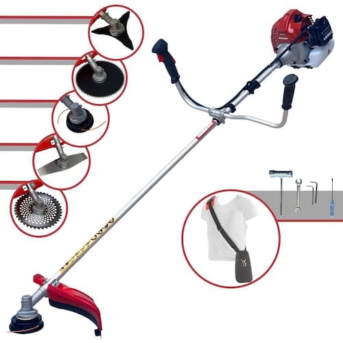 Com guidão ergonômico lateral, permite um alcance amplo e maior mobilidade, capaz de aumentar a produtividade diária. Possui motor 2 tempos á gasolina, de 52 Cilindradas; 2,5HP de potência que proporcionam maior performance e economia na operação. Seu conjunto de acessórios inclui kit de ferramentas, cinto de suporte almofadado, carretel de nylon e lâmina de corte 3 pontas.